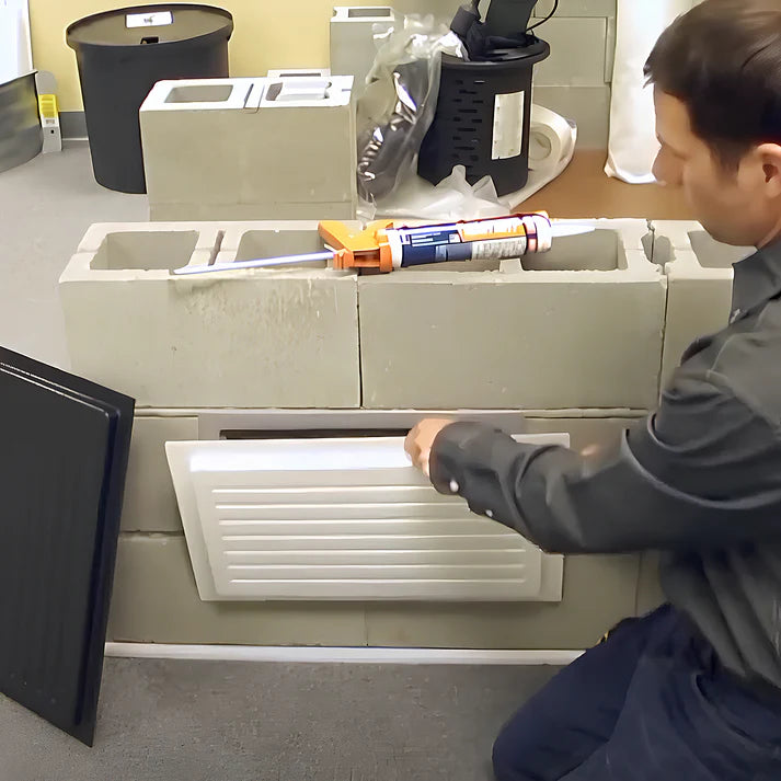 The small outward-mounted crawl space vent cover provides a permanent seal for foundation vents during crawl space encapsulation or conditioning projects. Installing over standard 8" × 16" foundation openings, this compact ABS cover eliminates passive ventilation to create a controlled environment that prevents moisture intrusion, mold growth, and air quality issues.